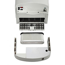 Модель BREEZ JF-1650 пригодна для работы в местах с повышенными требованиями к гигиене и имеет трёхуровневую систему фильтрации подачи воздуха: предварительный фильтр удерживает пыль и крупные частицы из воздуха, фильтр HEPA задерживает мелкодисперсные частицы Устройство подачи воздуха сконструировано таким образом, что позволяет стерилизовать не только воздух, но и HEPA фильтр, что предотвращает размножение плесени и других микроорганизмов внутри сушилки для рук, тем самым делая высушивание рук гигиенически чистым процессом. Для поддержки чистоты и гигиены система сбора дренажной воды собирает её в специальный поддон объёмом 800 мл. |
